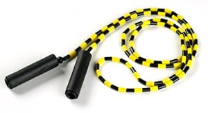 This is the rope I started off with. Since it's a bit heavier than a speed rope, it's not as fast so you go pretty slow with it. It doesn't kink plus since it is heavier, you could mess up a bit and the rope will still keep turning (by that, I mean that your feet may skim the rope but the rope is heavy enough that it does not stop). When I originally started to do tricks, I found it easier to work it out on beaded ropes and once I got the hang of it, then went to a speed rope (although now that I have a freestyle rope, that is the best way to go with the longer handles). Again, the fact it doesn't kink and get tangled makes it easier to master the cross. Double unders are a little tougher with these but it will give you a workout once you get to that point. I don't use beaded ropes anymore but I highly recommend them. Plus beaded ropes are the best ropes if jumping outside if the plastic beads are made of good material. Your rope won't wear out (not that I advocate jumping on concrete but once in a while it's okay)